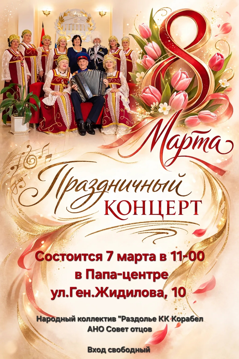АНО "Совет отцов Севастополя" совместно с народным коллективом "Раздолье" Культурного Комплекса "Корабел" приглашают вас на праздничный концерт, посвященный Международному женскому дню!